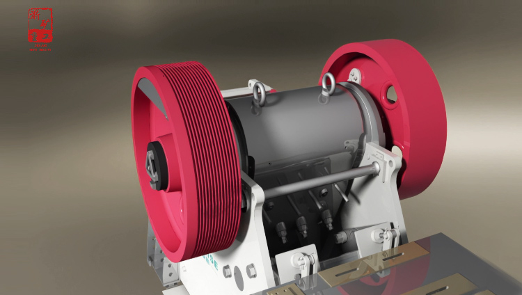 CJ系列顎式破碎機工作時采用的是曲動擠壓型的工作方式,電動機驅(qū)動皮帶輪傳動,通過偏心軸使動顎前后上下運動。當動顎上升時,肘板與動顎間夾角變大,從而推動動顎板向固定顎板接近,同時物料被壓碎或劈碎,達到破碎的目的;當動顎下行時,肘板與動顎夾角變小,動顎板在拉桿和彈簧的作用下,離開固定顎板,此時已破碎物料從破碎腔下口排出。隨著電動機連續(xù)轉(zhuǎn)動,破碎機動顎作周期運動壓碎和排出物料,實現(xiàn)連續(xù)生產(chǎn)。
